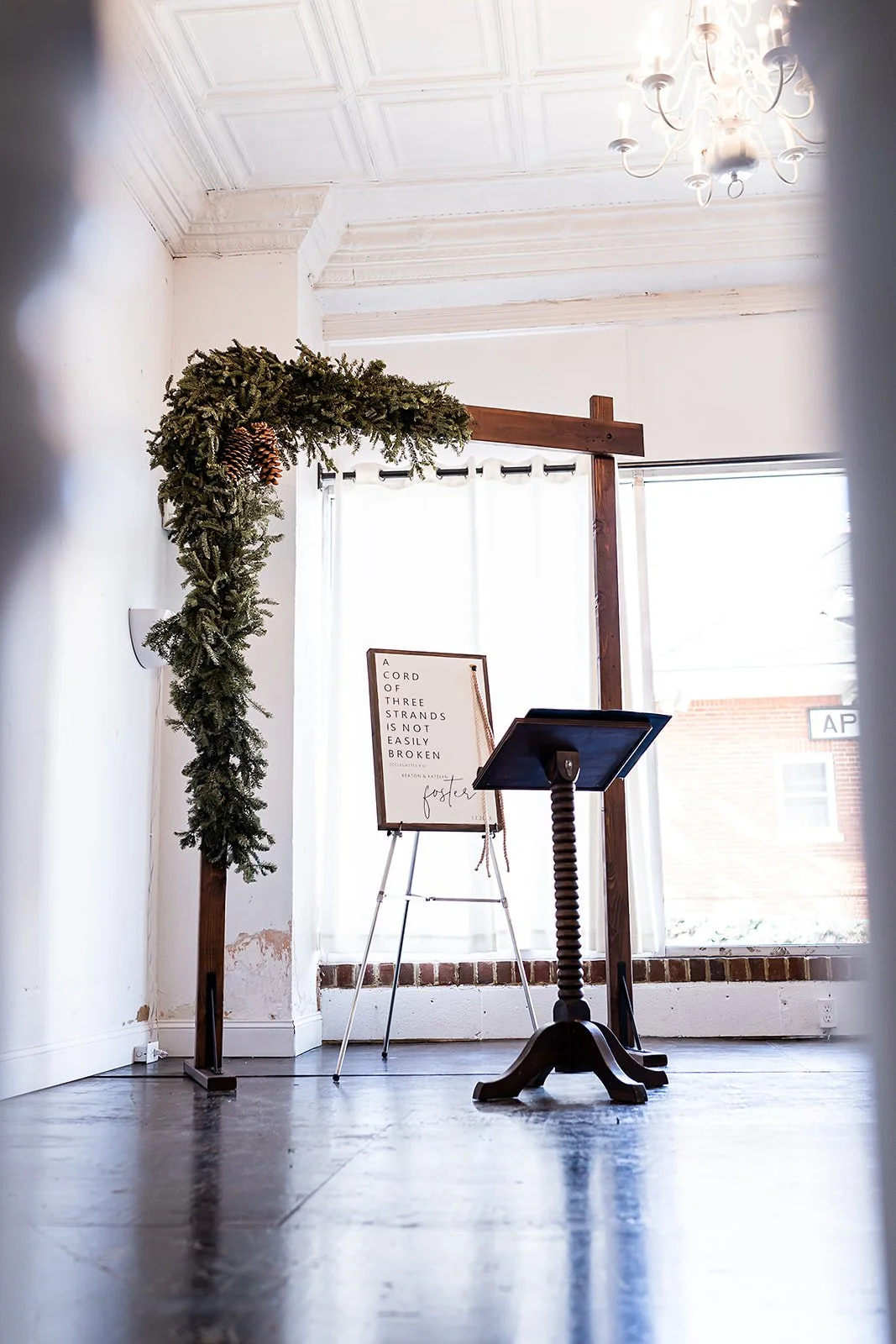 Wooden Arch + Vintage Lectern